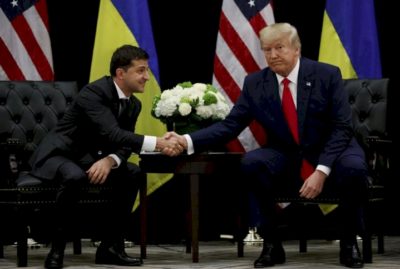 President Donald Trump meets with Ukrainian President Volodymyr Zelenskiy at the InterContinental Barclay New York hotel during the United Nations General Assembly, Wednesday, Sept. 25, 2019, in New YHork. (AP Photo/Evan Vucci)