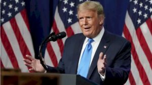 Then-President Donald Trump speaks during the first day of the Republican National Cnvention in 2020 in Charlotte, N.C. Chris Carlson/The Associated Press