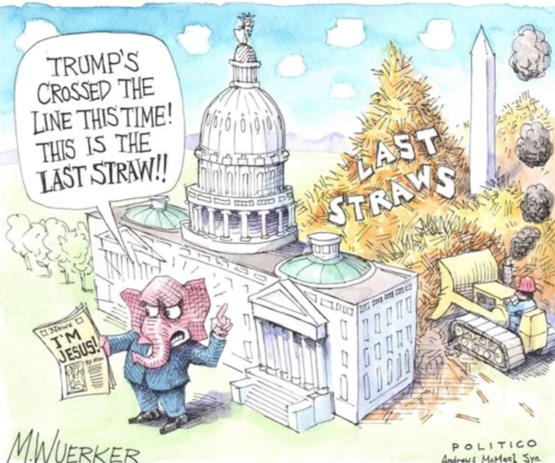 2) Trump’s trade war with much of the planet dominated the news last week. I thought Trump wanted nothing to do with war – because of those nasty bone spurs. Hillary calls Trump’s tariffs “yo-yo economics.” I asked her if “yo-yo” was because the stock market has been fluctuating, mostly down, due to Trump’s tariffs and firing of government workers. She answered: “It’s because Trump is a yo-yo! He’s so inept he doesn’t seem to know his tariffs are a tax on us.” She’s convinced he failed Econ 101 at the Wharton School.